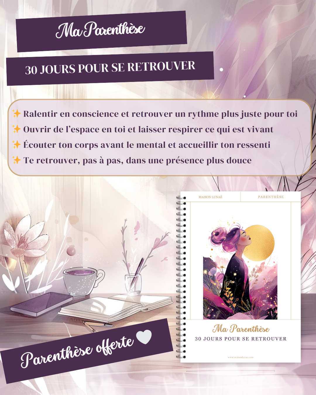 Cette Parenthèse a été créée pour offrir un espace de ralentissement conscient, loin des contraintes et des objectifs irréalistes.