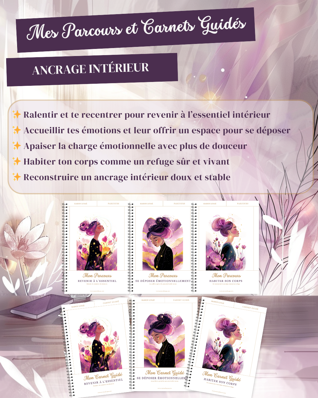 Un espace progressif pour ralentir, déposer, ressentir et retrouver une base intérieure simple, vivante, habitable.